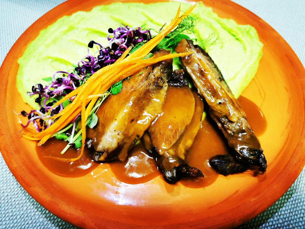 Ismét előkerül a medvehagyma, ezúttal a burgonyapürében. Ez a klasszikus köret kerül sült fokhagymás, rozmaringos báránycombunk mellé.