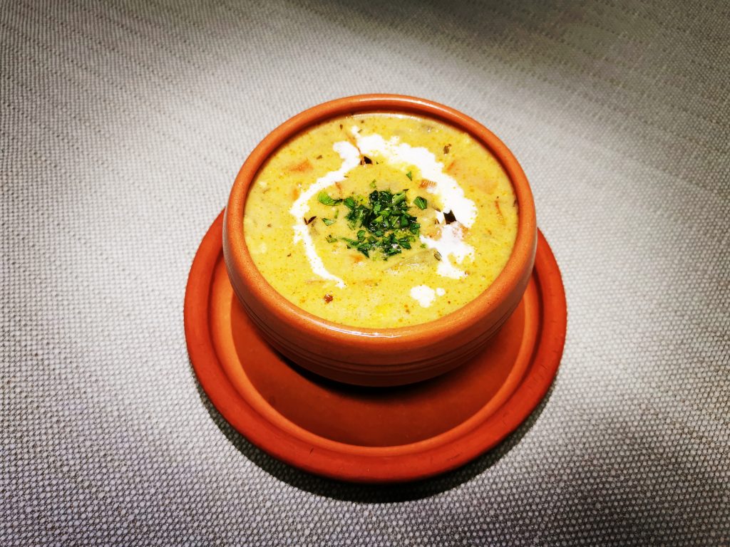 Ebben az időszakban nyílik az év során egyetlen alkalommal a medvehagyma, most friss, így burgonya gombócunk természetesen nem lehet más, mint medvehagymás! Ez a házi gombóc kerül tavaszi zöldséges bárányragulevesünkbe.